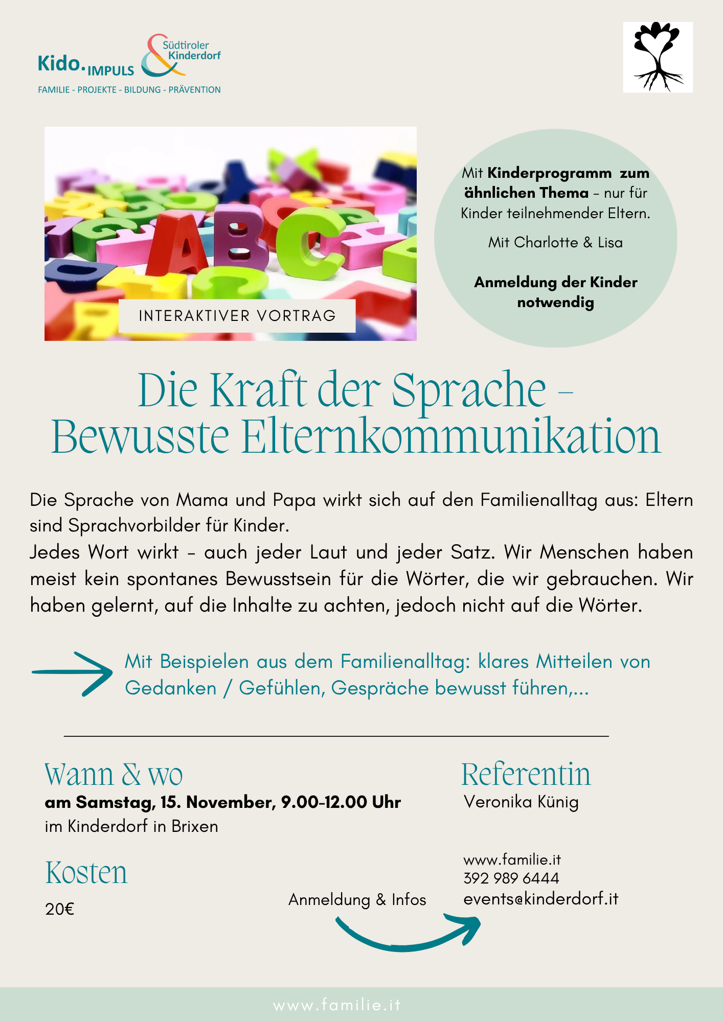 Mit Kinderprogramm zum ähnlichen Thema - nur für Kinder teilnehmender Eltern. Anmeldung der Kinder erforderlich!