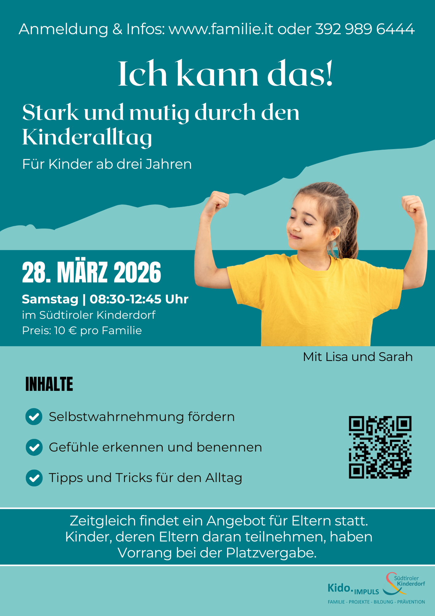 Zeitgleich findet ein Angebot für Eltern statt. Kinder, deren Eltern daran teilnehmen, haben Vorrang bei der Platzvergabe.