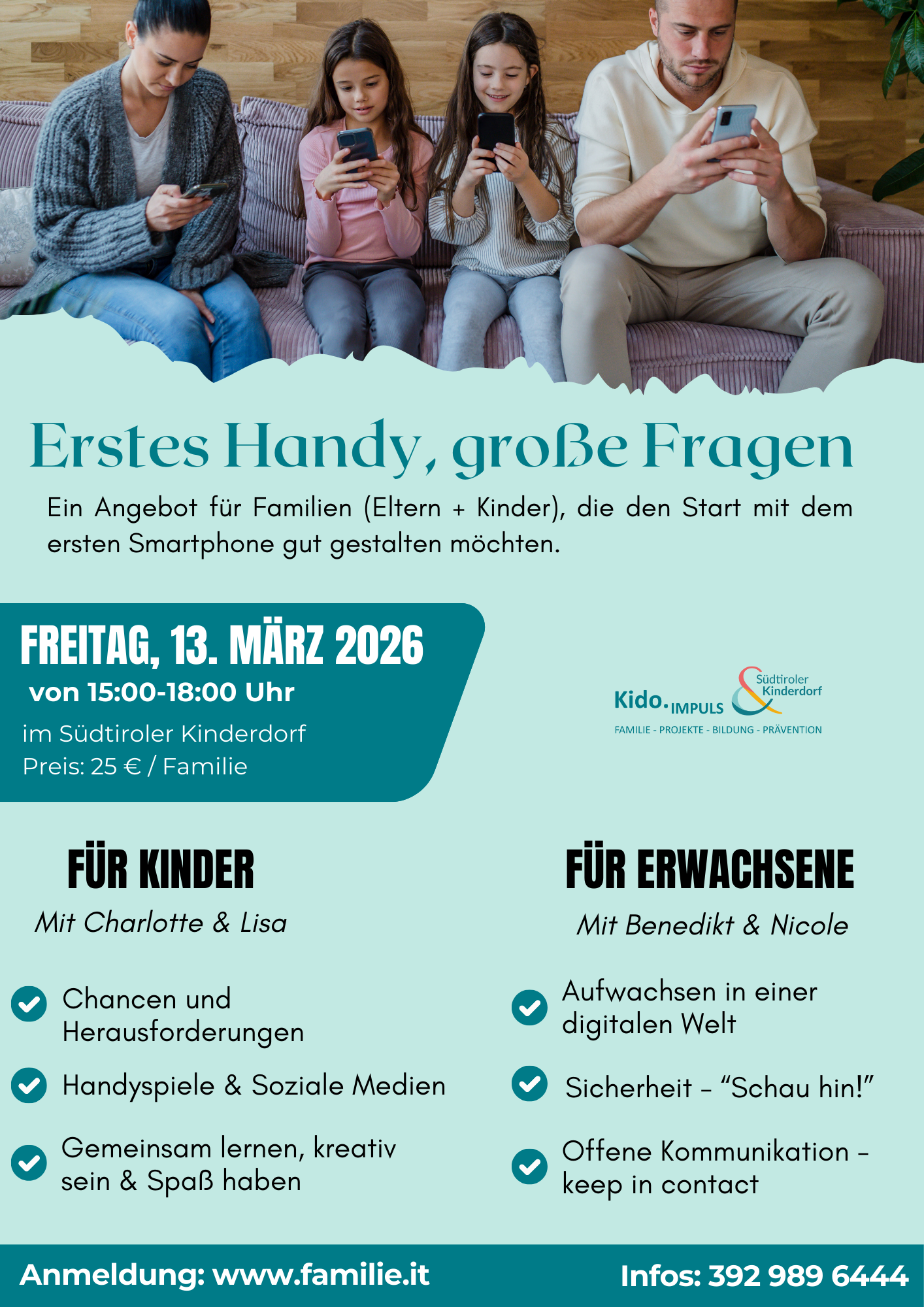 Ein Angebot für Familien (Eltern + Kinder), die den Start mit dem ersten Smartphone gut gestalten möchten.